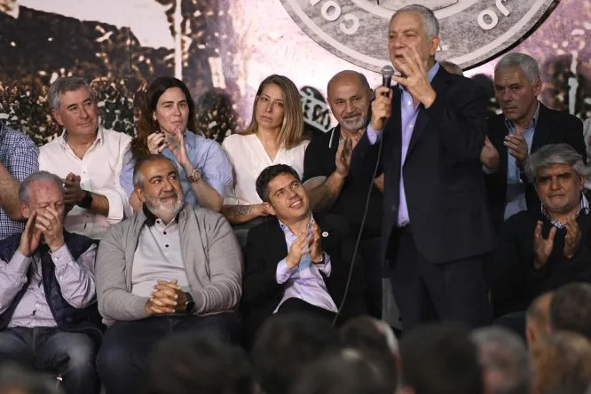 Pero el acto derivó en algo más: un clamor explícito por la candidatura presidencial de Kicillof. “Se siente, se siente, Axel Presidente”, cantó la militancia frente al escenario donde estaban Daer y Moyano y otros pesos pesado de la conducción como Andrés Rodríguez, de UPCN, y Octavio Argüello, de Camioneros.