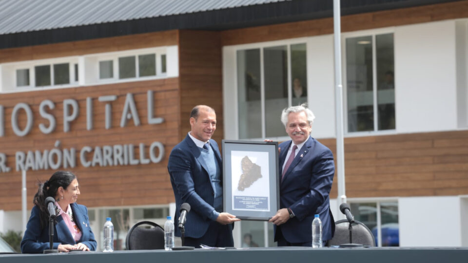 El Presidente inauguró el nuevo edificio del Hospital “Dr. Ramón Carrillo” en la ciudad de San Martín de los Andes acompañado por la ministra de Salud, Carla Vizzotti, el ministro de Obras Públicas, Gabriel Katopodis, y por el gobernador de Neuquén, Omar Gutiérrez.