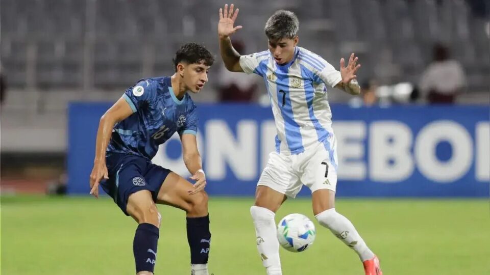 Argentina buscó reaccionar rápido, con un tiro libre de Echeverri que se fue por encima del travesaño y una mediavuelta de Hidalgo que se convirtió en córner tras un roce. Esa búsqueda transformó el desarrollo en un ida y vuelta. Del otro lado, Morinigo se filtró en el área y Martinet se impuso en el mano a mano. Luego, en otra réplica, Caballero la picó e hizo temblar el travesaño. Y, antes del descanso, el portero de River volvió a exhibir sus reflejos ante Gómez y Morinigo, una vez más.