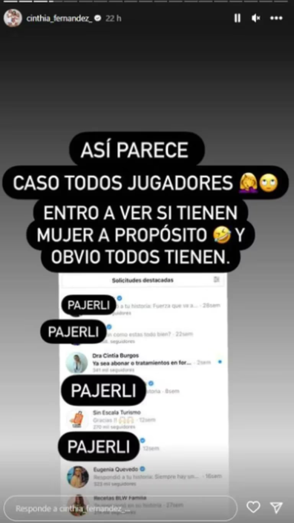 Mientras tanto, la mediática mostró una captura de su bandeja de mensajes privados de su red social. Sobre el ícono de cada nombre, se tomó el trabajo de tacharlo para no revelar la identidad de cada uno, pero a su lado escribió: “Pajerli”.