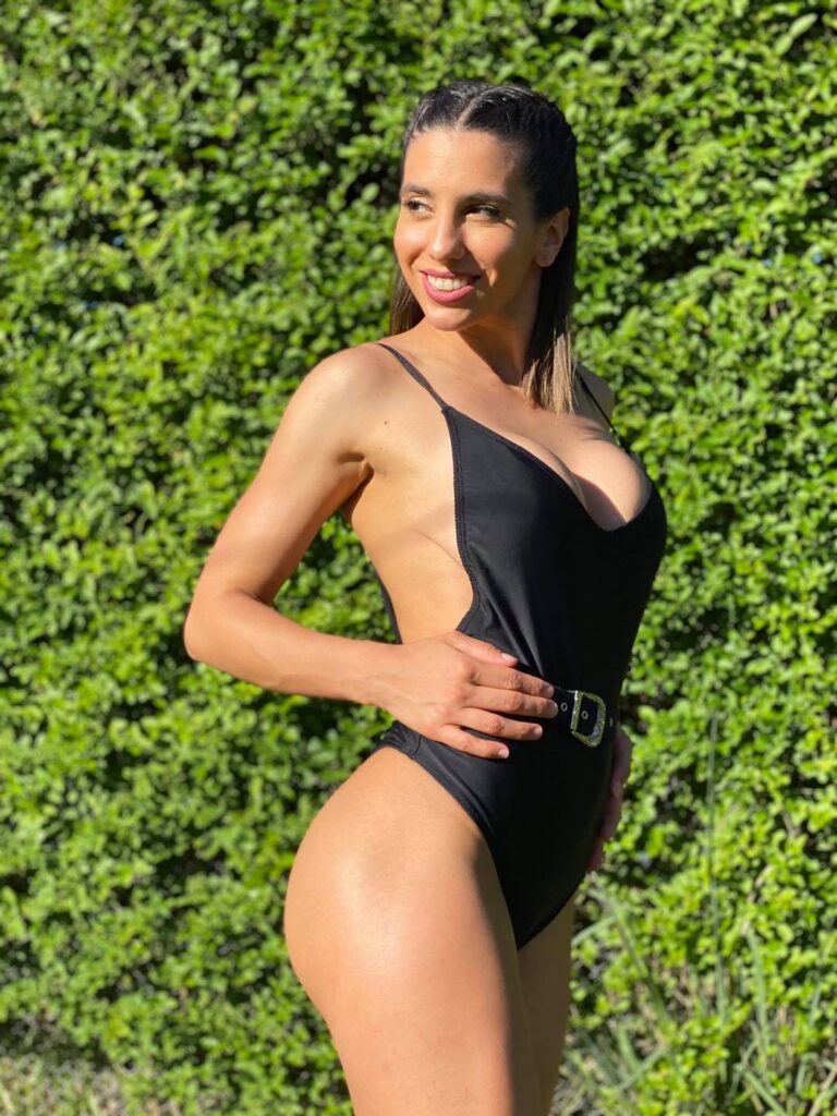A orillas del mar, la panelista se fotografió con una microbikini total black supercanchera de tiro alto, un modelo que -sin dudas- es furor entre las famosas fashionistas de la escena local.