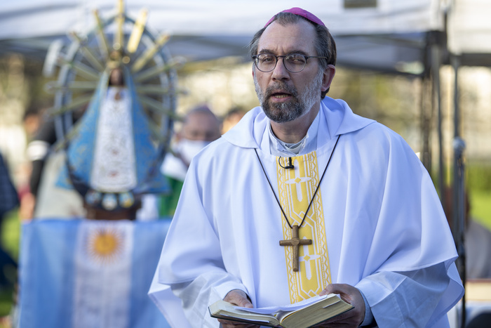 “Mucho tiempo estaré en medio de ustedes, ese es mi deseo”, expresó Carrara en su primer mensaje. “Muchas veces caminaré un poquito más despacio, buscando cuidar la fragilidad de algunos que necesitan ir más despacio en el camino de la vida; a veces, ir detrás implica dejarse guiar por la fuerza del espíritu que recibimos en el bautismo”, agregó. Finalmente, pidió a los fieles que pidan por él “a la virgen de Luján”.
