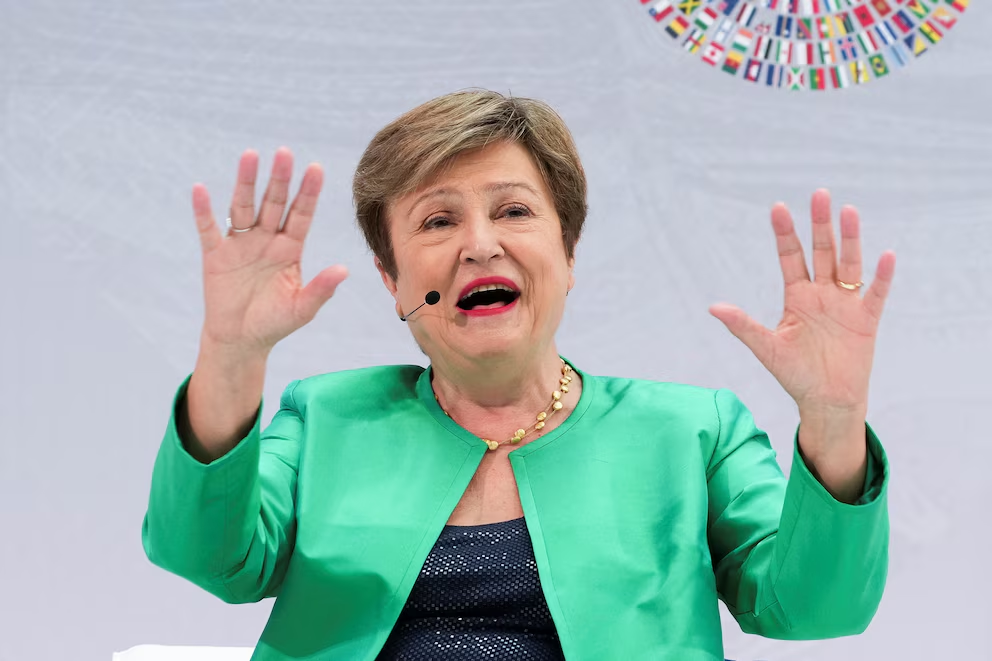 La Directora Gerente del Fondo Monetario Internacional (FMI), Kristalina Georgieva, participa en el “Debate sobre la economía mundial” durante las Reuniones de Primavera anuales del FMI y el Banco Mundial de 2026 en Washington, D.C., EE.UU., el 16 de abril de 2026 (REUTERS/Ken Cedeño)