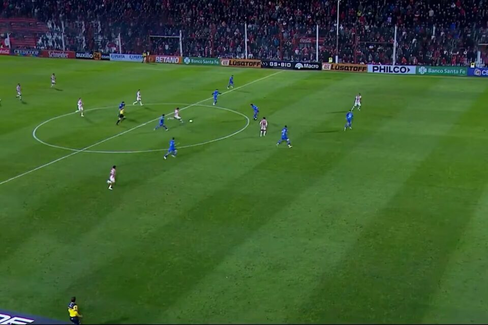 Una semana atrás, Ramón Sosa hizo lo propio para Talleres en la victoria de su equipo ante Independienteen el Estadio Libertadores de América-Ricardo Enrique Bochini. El Rojo perdía 2-1, razón por la cual se volcó en ataque, dejó espacios y el atacante los aprovechó. En los últimos segundos del tiempo adicionado, un despeje de Juan Portillo a la salida de un córner terminó en poder de Marcos Portillo, quien lanzó un pase en profundidad para Sosa. También de primera, el paraguayo le pegó apenas cruzó la mitad de cancha.