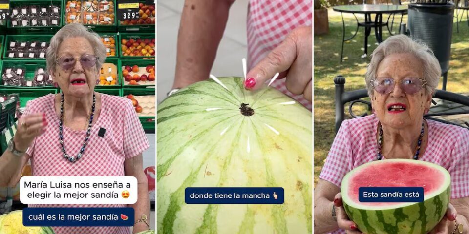El consejo de María Luisa, una española que cautivó las redes sociales, se convirtió en un fenómeno viral en TikTok. Desde la cuenta @adoptaunabuelo, donde se comparten historias y vivencias de abuelos para fomentar la compañía intergeneracional, el video en el que María Luisa enseña cómo elegir una sandía dulce y jugosa acumula 2,5 millones de reproducciones y más de 157 mil “me gusta”.