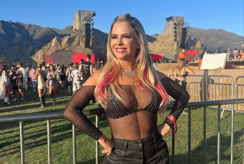 La abogada y panelista no pasó desapercibida en Mendoza con su body trasparente lleno de brillos y microshort.
