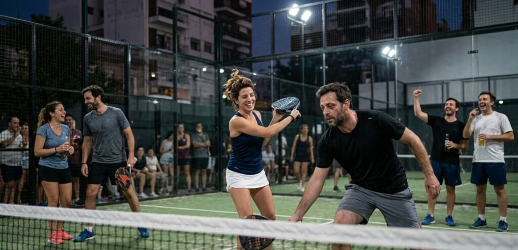 La cancha estaba llena. Eran más de cincuenta personas, hombres y mujeres entre 35 y 55 años, que no se conocían entre sí, mezclándose en partidos cortos. Las parejas se armaban ahí mismo, casi al azar.