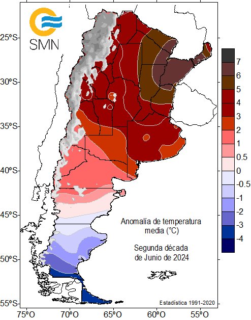 Se trata de una alerta amarilla que alcanza al sur de Jujuy, norte de Salta, todo Tucumán, sur de La Rioja, noroeste de Córdoba, norte de San Luis y cordillera de Santa Cruz.