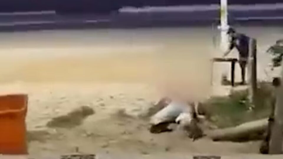 Imágenes difundidas en redes sociales documentaron el estado de las víctimas tras el ataque. En uno de los videos, se observa a uno de los jóvenes desorientado y desplomado en la arena, mientras las tres mujeres escapan rápidamente en un taxi.