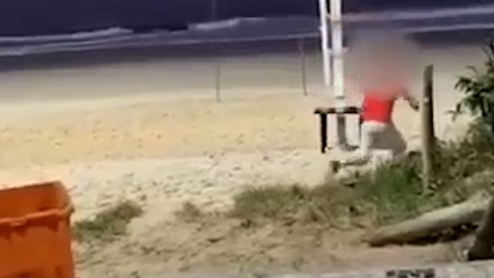 Un joven visitante extranjero fue captado tambaleándose por la arena hasta desplomarse, víctima de una intoxicación inesperada durante su viaje a Río (Captura de video)
