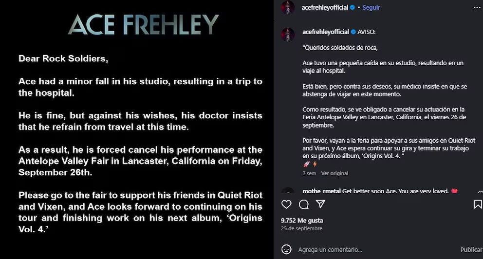 La familia de Frehley emitió un comunicado emotivo: “Estamos completamente devastados y desconsolados. En sus últimos momentos, tuvimos la fortuna de rodearlo con palabras amorosas, pensamientos, oraciones e intenciones pacíficas mientras dejaba este mundo.