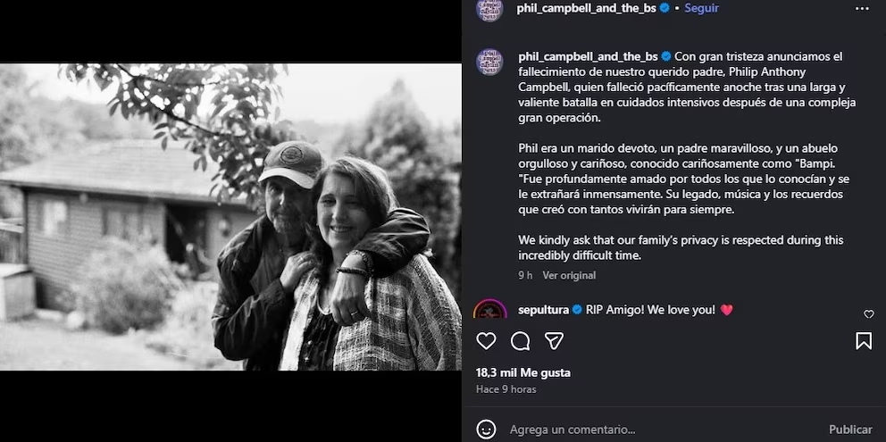 “Con gran tristeza anunciamos el fallecimiento de nuestro querido padre, Philip Anthony Campbell, quien falleció en paz la noche pasada después de una larga y valiente batalla en cuidados intensivos tras una operación mayor y compleja”, indicaron. La familia solicitó respeto por su privacidad durante este momento.