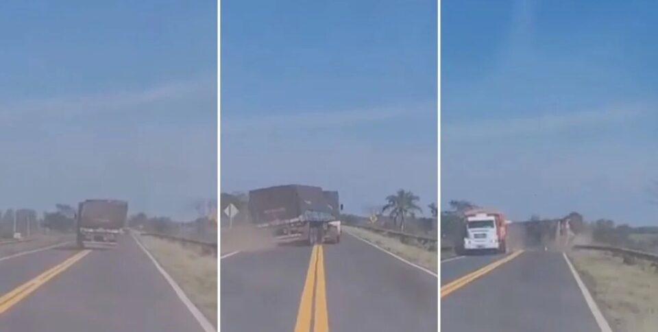 “¿Qué está haciendo el loco?”, se escucha a uno de los automovilistas que viajaba este lunes por la Ruta Nacional 14 de Corrientes, entre las ciudades de La Cruz y Alvear, y filmó cómo un camión zigzagueaba peligrosamente. La pregunta fue seguida por una catarata de onomatopeyas durante más de un minuto hasta que lo inevitable ocurrió: el vehículo chocó con otro que venía en sentido contrario y volcó, desparramando su carga sobre la calzada y cortando el tránsito por varias horas.