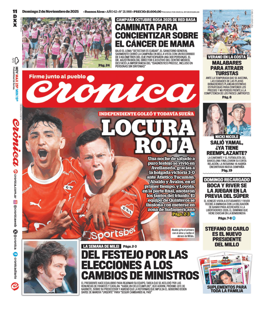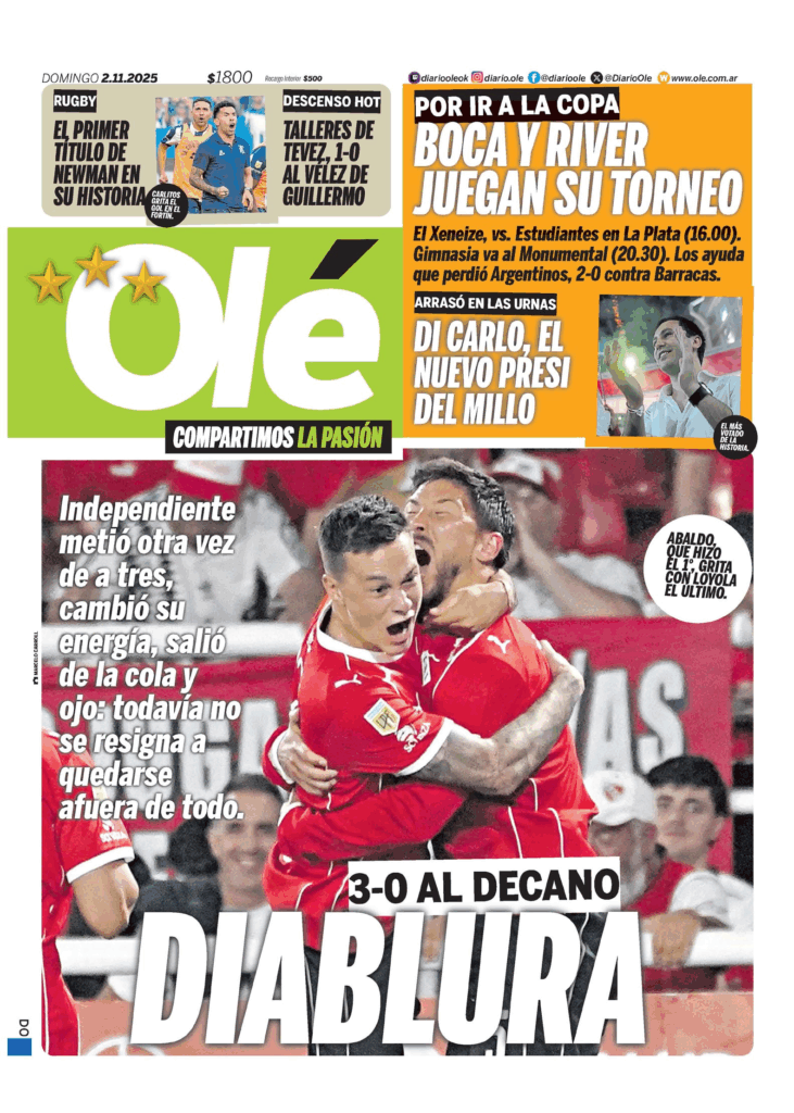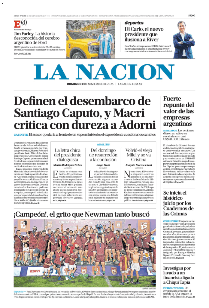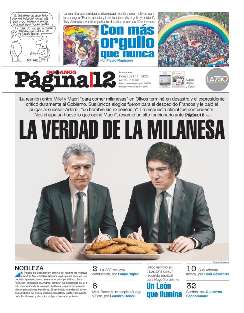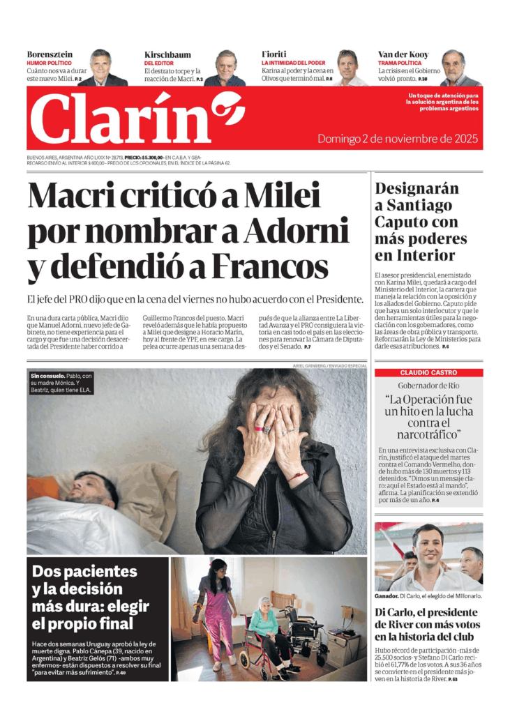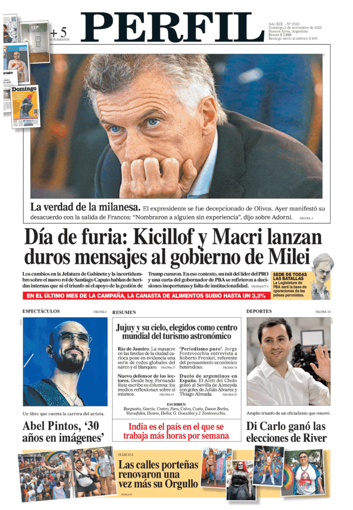 Tapas de los principales diarios nacionales de este domingo 2 de noviembre 2 noviembre, 2025 La Nación Clarín Página 12 Olé Crónica Perfil