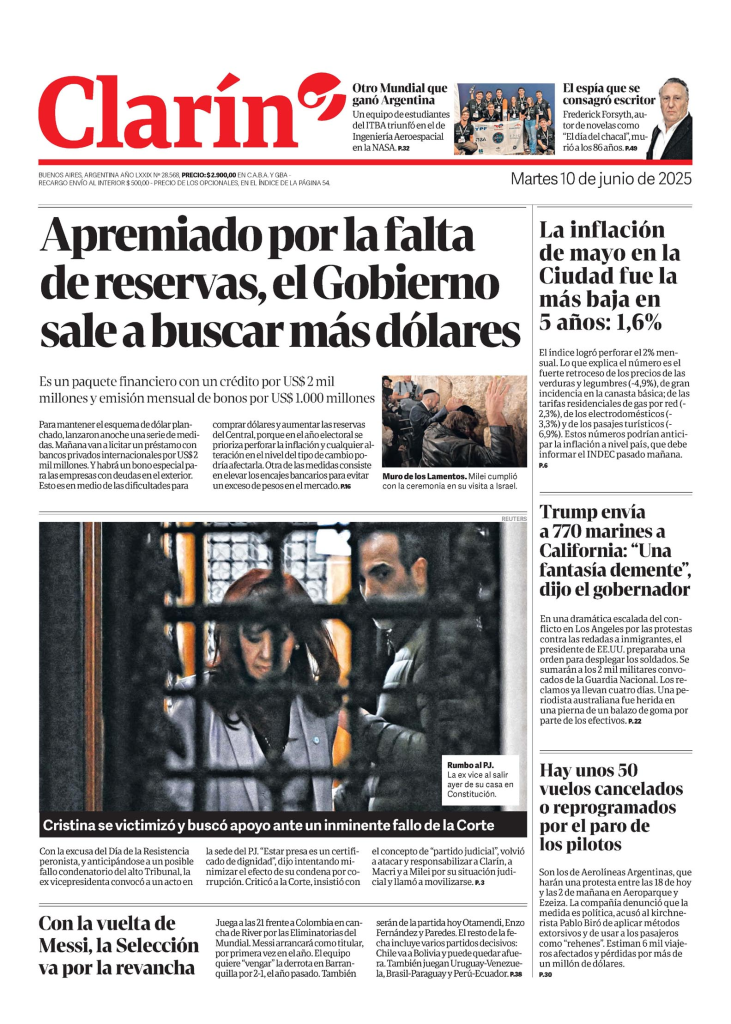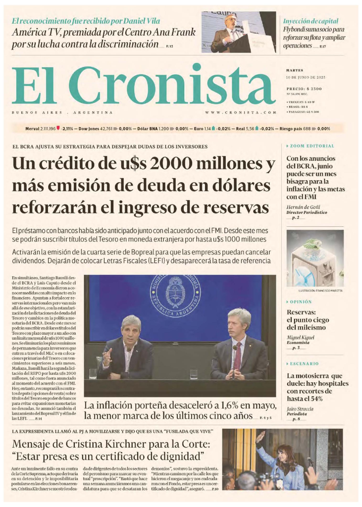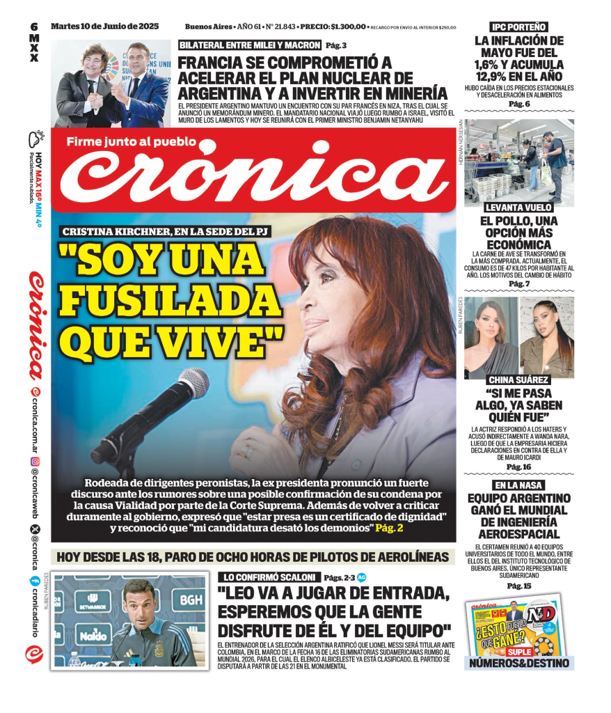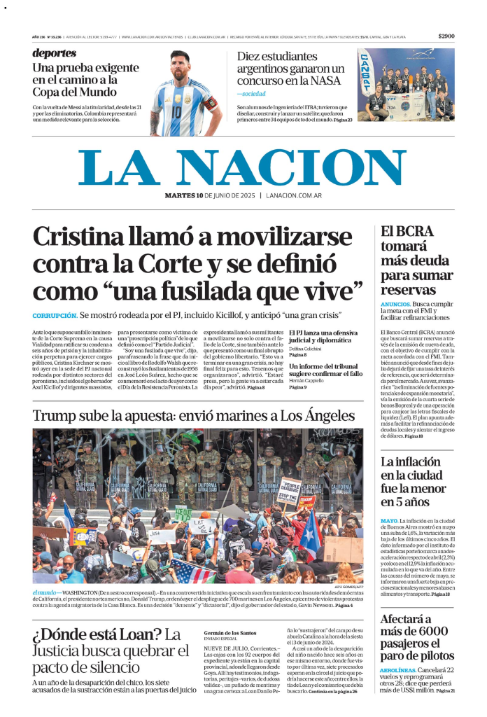 Tapas de los principales diarios nacionales de este martes 10 de junio 10 junio, 2025 La Nación Clarín Página 12 Olé Crónica El Cronista