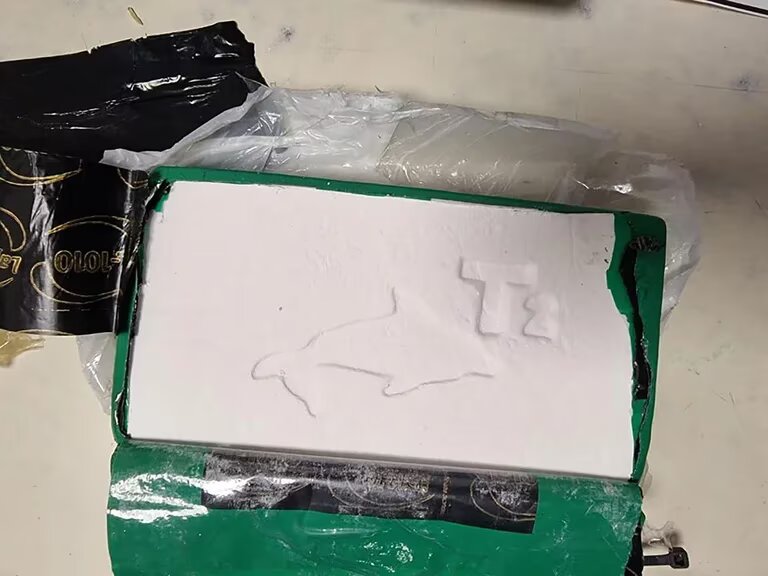 Fuentes del organismo detallaron que el paquete tenía la figura de un delfín en bajorrelieve. Este tipo de símbolos suelen ser usados en el narcotráfico para indicar a los clanes productores, y sirven para marcar el origen y el destino de la sustancia.