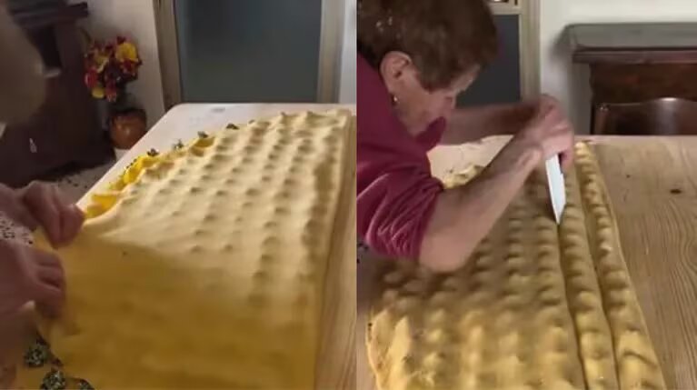 Una mujer italiana de 88 años se volvió viral en las redes sociales luego de mostrar en cámara cómo se las arreglaba para cocinar ravioles para una familia numerosa de una sola pasada.