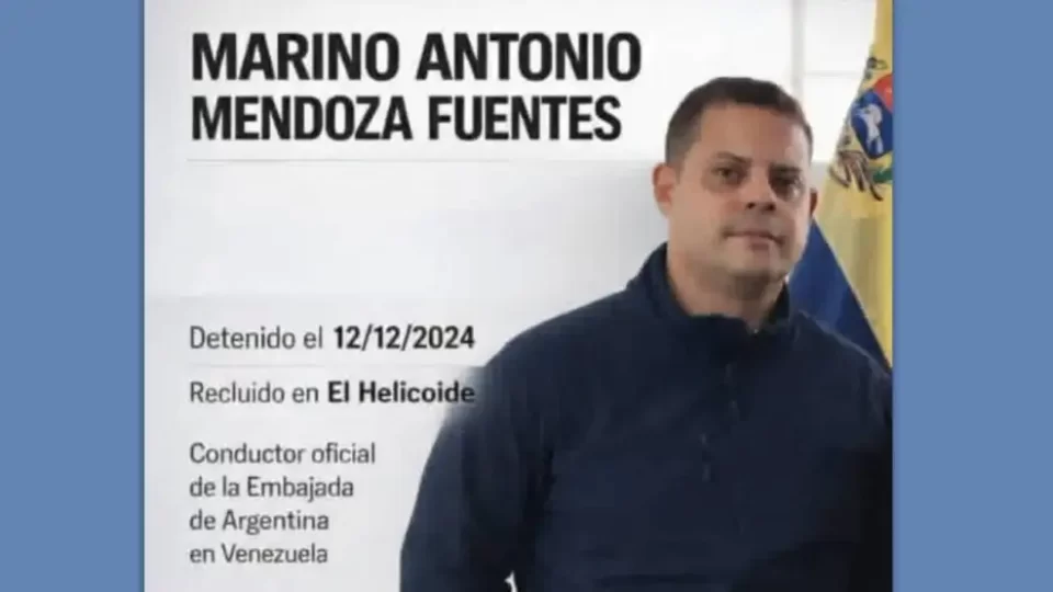 El régimen venezolano liberó este miércoles 21 a Marino Antonio Mendoza Fuentes, chofer oficial de la embajada argentina en Caracas, quien había permanecido detenido desde el 12 de diciembre de 2024 sin pruebas presentadas en su contra. Durante su arresto, Mendoza Fuentes estuvo recluido en El Helicoide, centro del Servicio Bolivariano de Inteligencia Nacional (Sebin), acusado de terrorismo por el gobierno de Delcy Rodríguez.